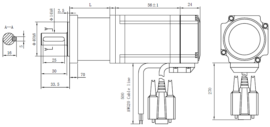 Gearbox Length(L)=53mm for ratio 5/1, 10/1; 70mm for ratio 20/1, 50/1, 100/1