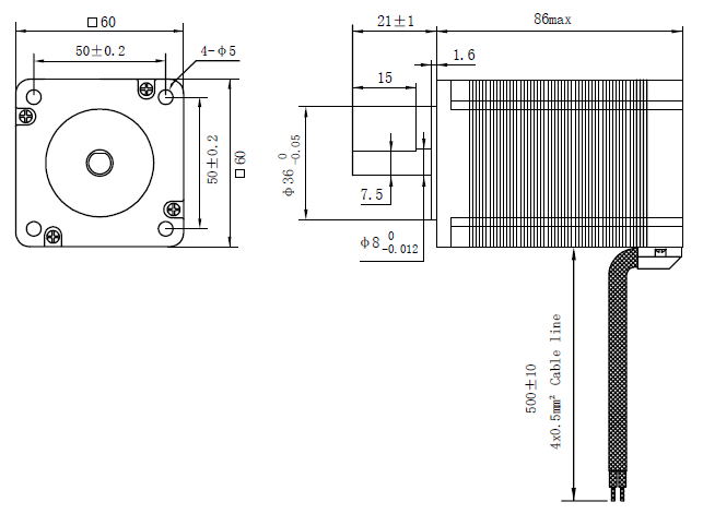 NEMA 24 Stepper Motor 3Nm: This size 60mm NEMA 24 hybrid bipolar stepping motor has a 1.8° step angle(200 steps/revolution) and a body length 86mm. Each phase draws a current 4.2A, allowing for a strong holding torque of 3.0Nm.